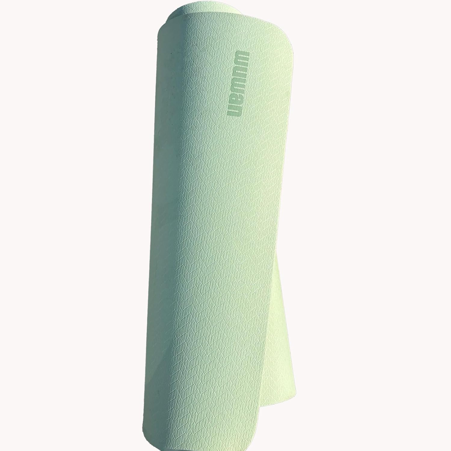 MADE WITH RECYCLABLE MATERIAL FOR LONG-LASTING USE — Constructed from TPE material known for its flexibility, durability, and resilience. This mat maintains its shape and softness even after repeated rolls and stretches. Its recyclable composition makes it a responsible choice for those who value sustainable fitness gear, offering lasting comfort without compromising performance or appearance. Built to handle daily practice, this mat is made to accompany your wellness journey.