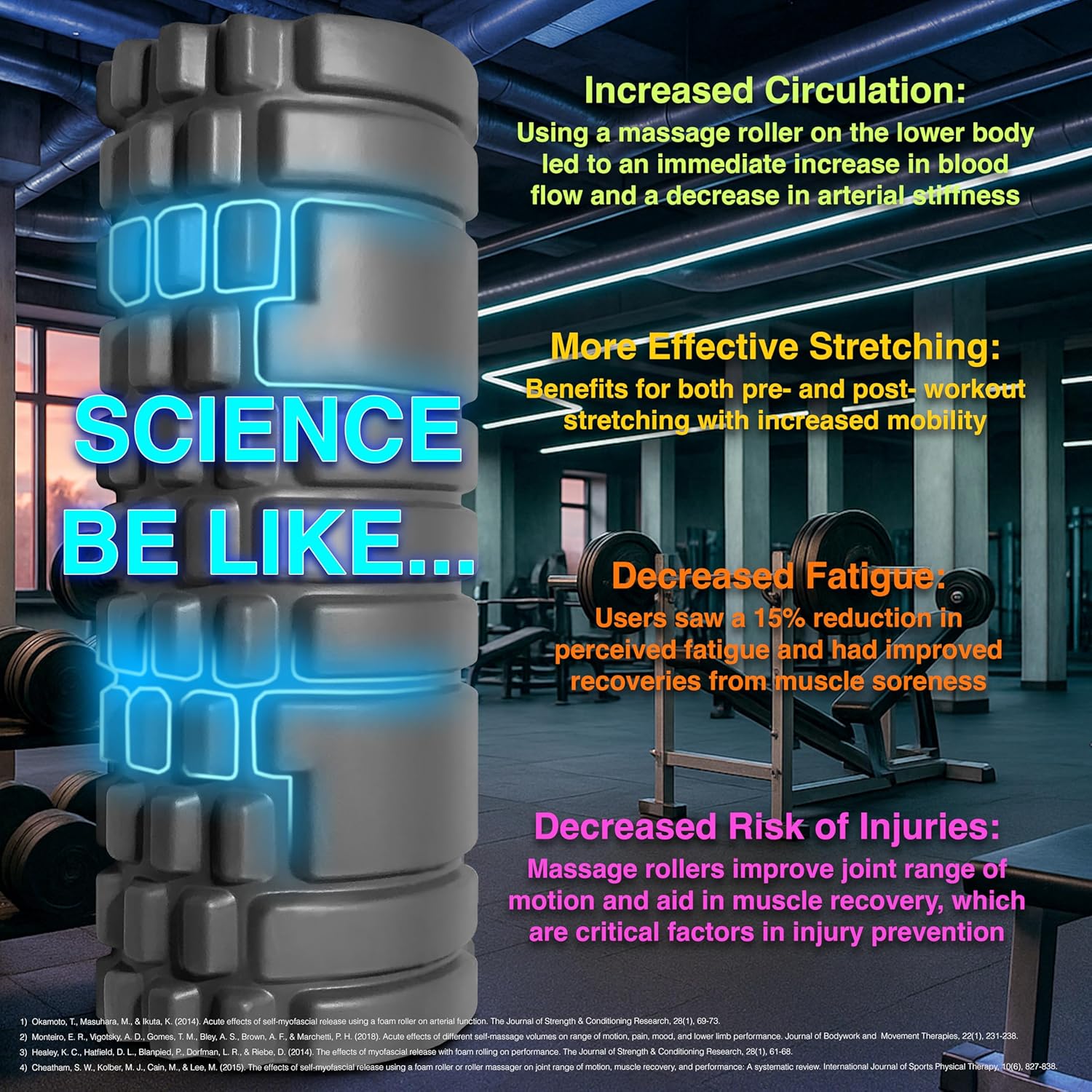QUICK AND EFFECTIVE: Foam rolling for just 20 minutes after exercise, and again at 24 and 48 hours has been clinically proven to reduce recovery time by 20%, increase flexibility by 10%, and reduce soreness by as much as 30%. They have also been shown to decrease the risk of injuries in the first place