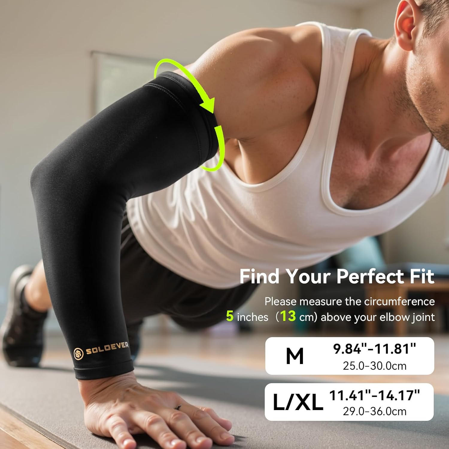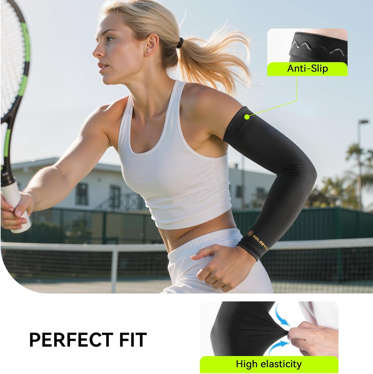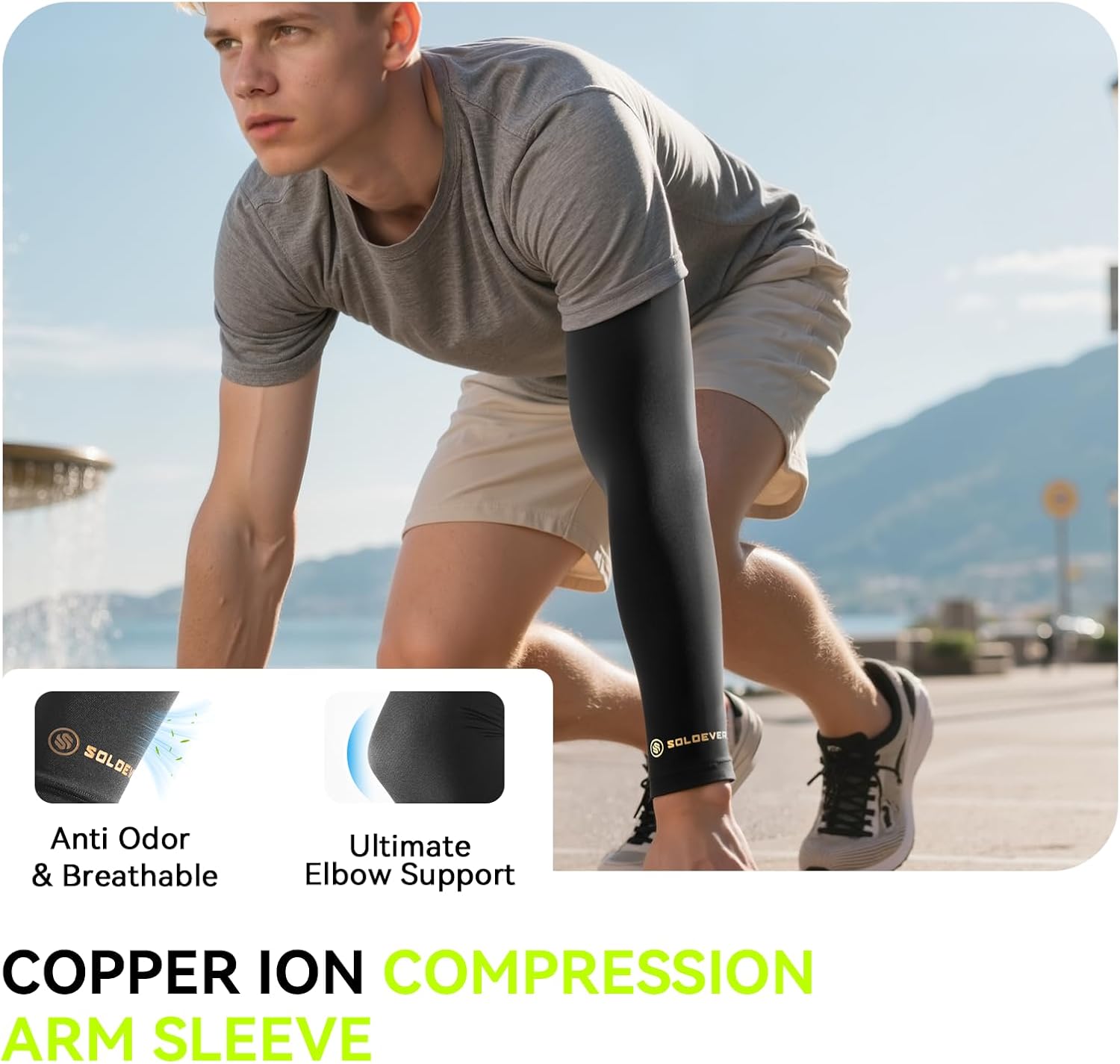 SOLOEVER Copper Ion Compression Arm Sleeve provides superior support, improves circulation, and enhances comfort during daily activity