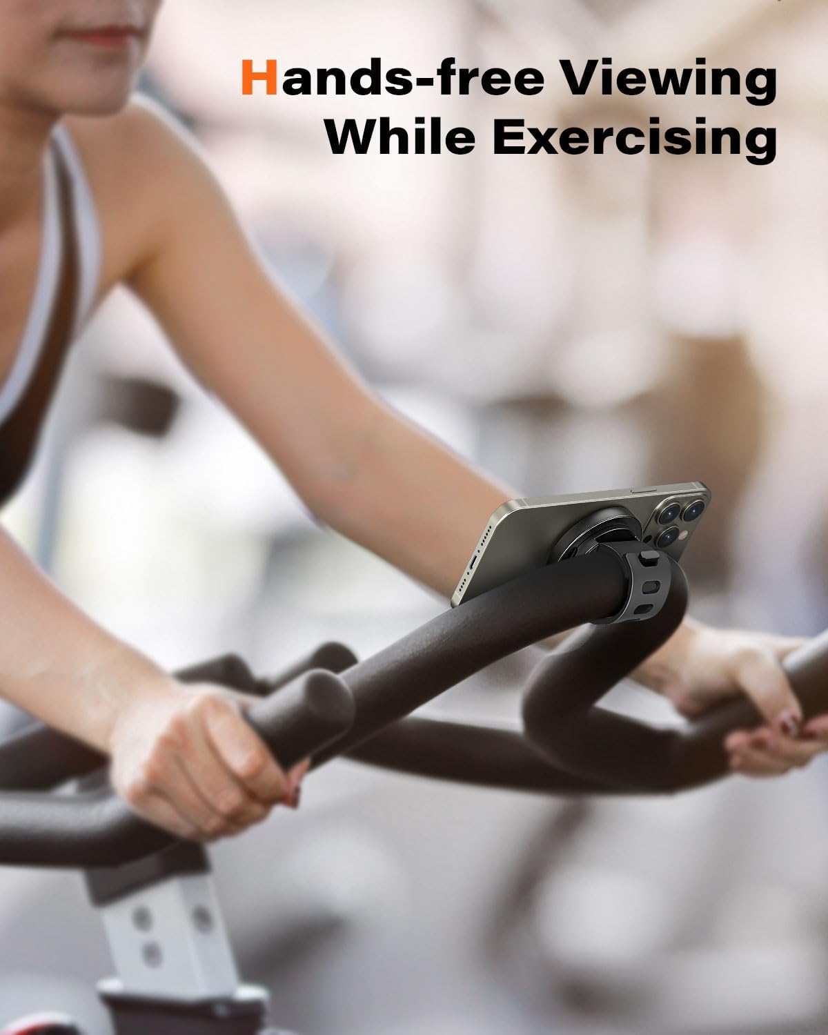 3-in-1 Versatile Mount: Strap Mode — Simply wrap the strap around handlebars on exercise bikes, treadmills, strollers. Magnetic Mode — The strap’s built-in magnets attach directly to any iron surface, easily attach to gym racks. Fixed Dock Mode — Pull the Magnetic head off the strap and click it onto the adhesive base for a permanent mount on walls, car dashboards, or other smooth surfaces.