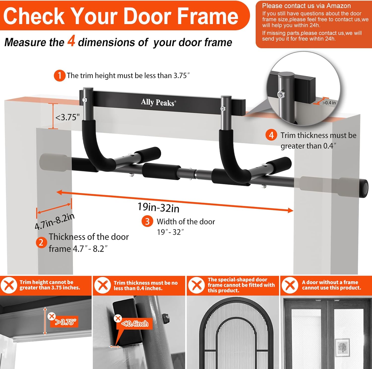 💪 CHECK YOUR DOOR FRAME:The door pull up bar – can be utilized on any commonplace 24 “to 32” width and 4.7 “to 7.5″depth door body, Door body pull up bar makes use of leverage to carry in opposition to the doorway.Installs in seconds.