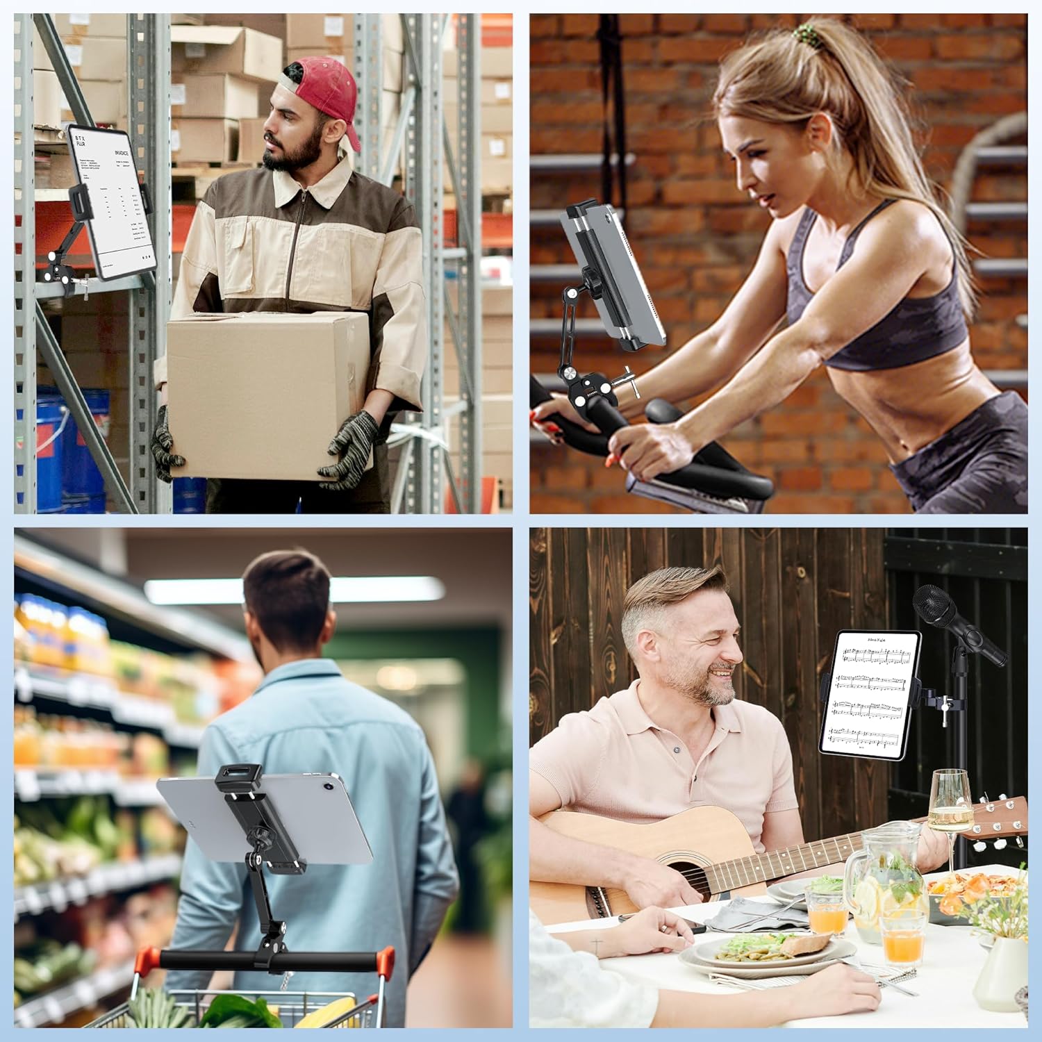 Great Fitness Partner: This treadmill tablet holder keeps the tablet at the right distance from your eyes. The adjustable design provides you with the best angle to watch fitness instruction videos or TV shows, freeing your hands and relieving your neck fatigue, perfect for watching sports channels on your tablet while exercising on a treadmill or gym cardio training equipment (with handles) and elliptical machines.