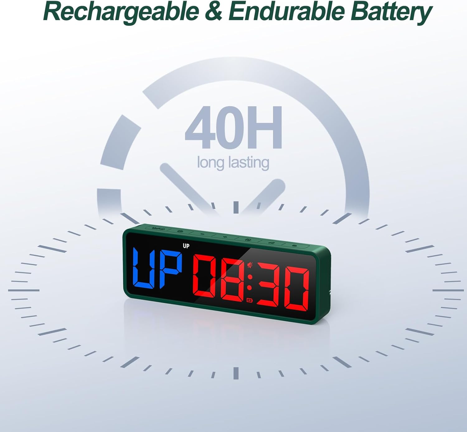 𝐕𝐨𝐥𝐮𝐦𝐞 𝐂𝐨𝐧𝐭𝐫𝐨𝐥 𝐰𝐢𝐭𝐡 𝐌𝐮𝐭𝐞: The volume of the timer is adjustable,and it can also be turned off. Also, it has an ending alert when a workout is finished.