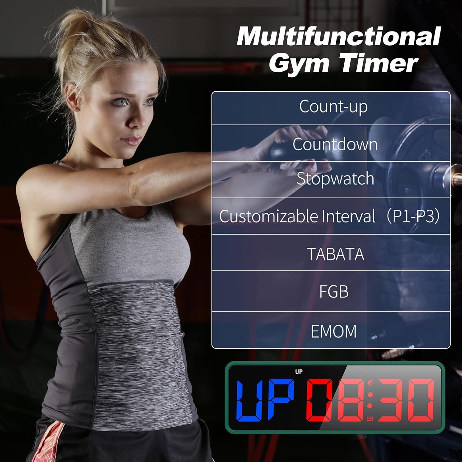 𝐑𝐞𝐦𝐨𝐭𝐞 𝐂𝐨𝐧𝐭𝐫𝐨𝐥 & 𝐒𝐭𝐫𝐨𝐧𝐠 𝐌𝐚𝐠𝐧𝐞𝐭: Built-in remote for ready-to use, and you don’t have to worry about finding / losing the remote anymore. Made for count up, countdown, EMOM, custom intervals setting, and you can easily set the interval workout time/rest time/round for P1-P3 modes. Plus, the built-in magnetic spine makes it possible to mount to any metal gym equipment.