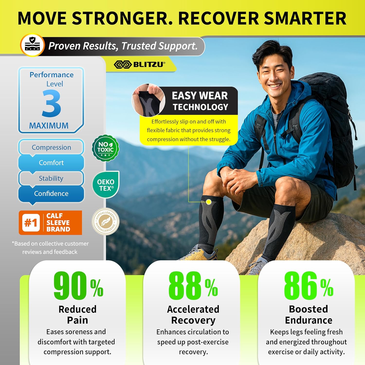 Efficient Compression for Swelling & Varicose Veins Reduction: The BLITZU Calf Compression Sleeves characteristic graduated compression to enhance blood circulation, cut back swelling, and alleviate discomfort brought on by varicose veins and pregnancy-related leg swelling, making them excellent for nursing moms and people with circulation points.