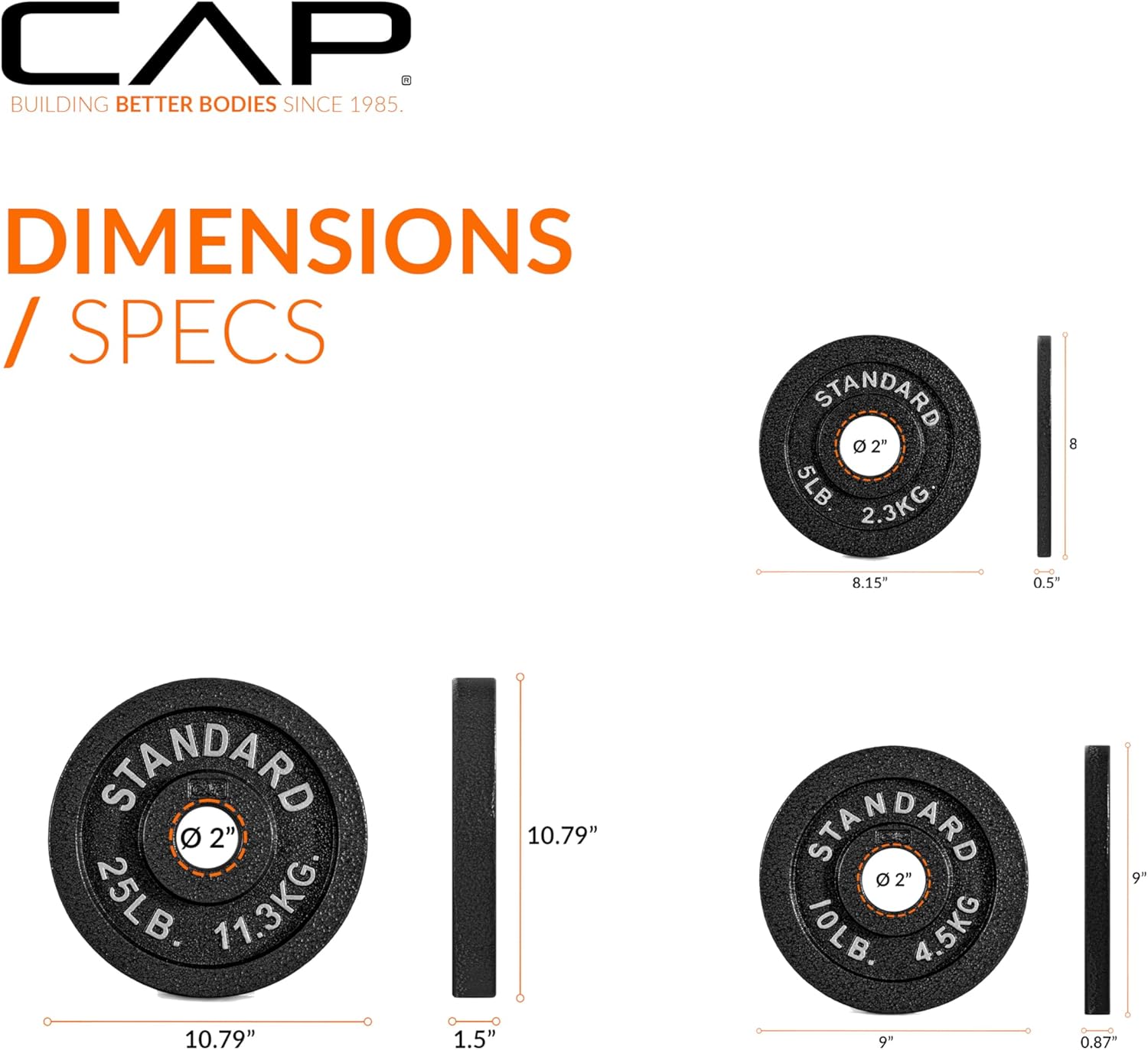 CAP Barbell 2-Inch Olympic Cast Iron Plate Weight Set | 75-285 lbs | Multiple Options