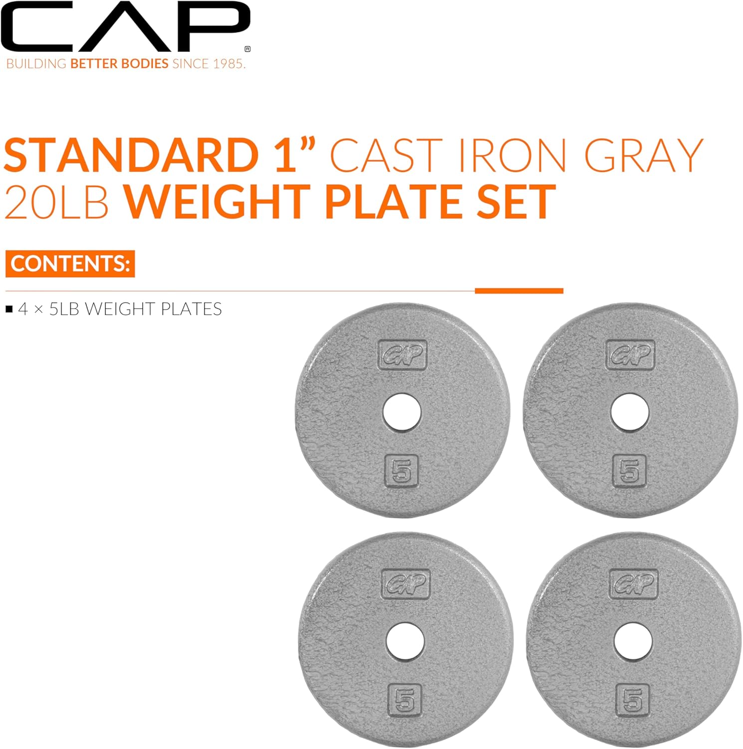 Be the first to review “CAP Barbell Standard 1-Inch Cast Iron Weight Plates – Singles & Sets | 1.25-50 lbs | Multiple Options”