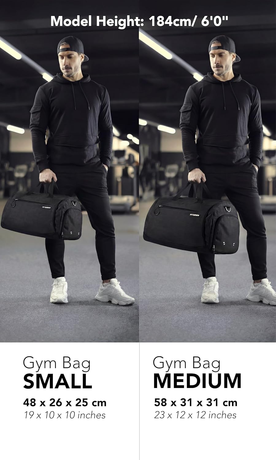 This bag features a separate, waterproof compartment for damp workout clothes or swimming accessories. It’s perfect for separating wet and dry attire, ensuring you carry everything in an organized manner.
