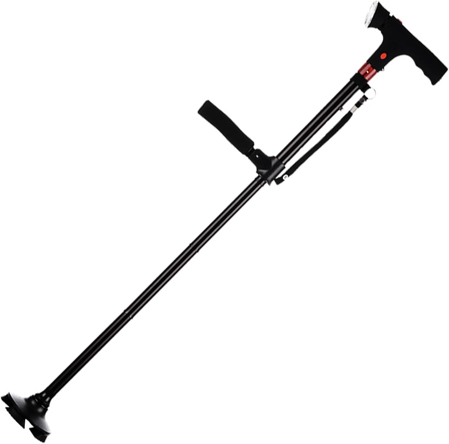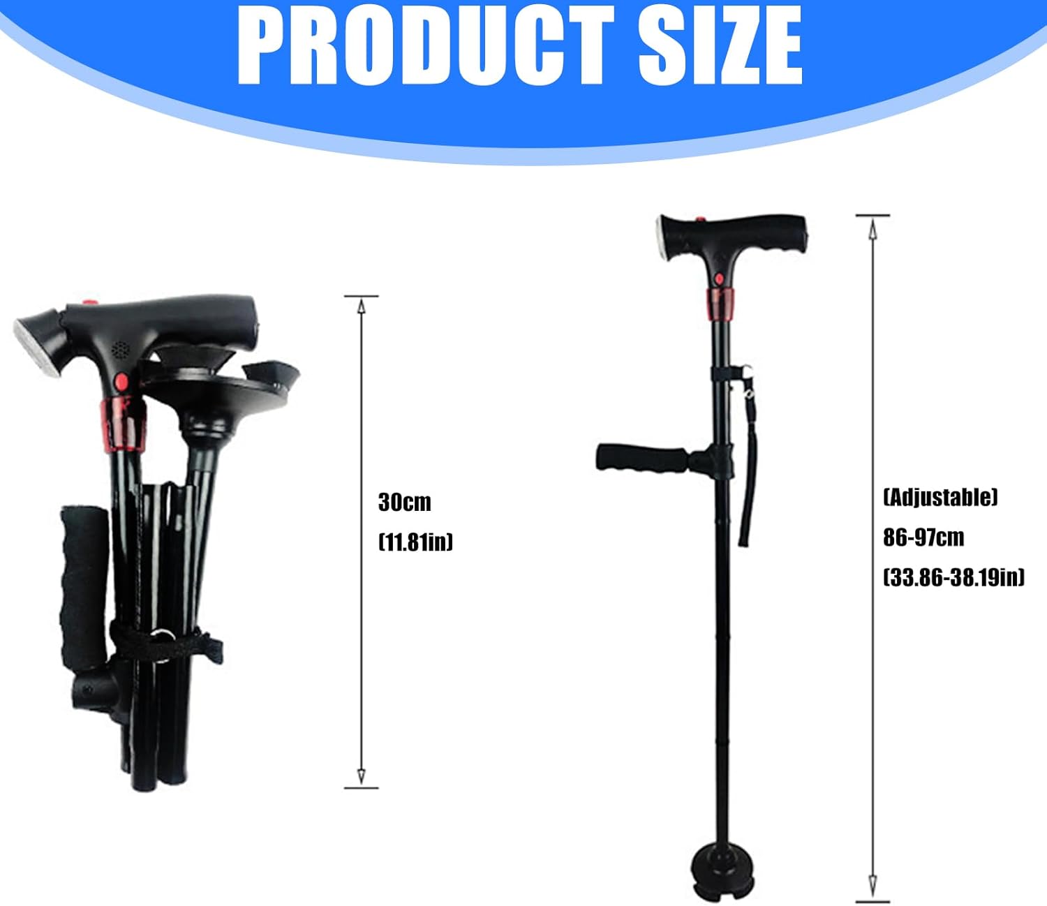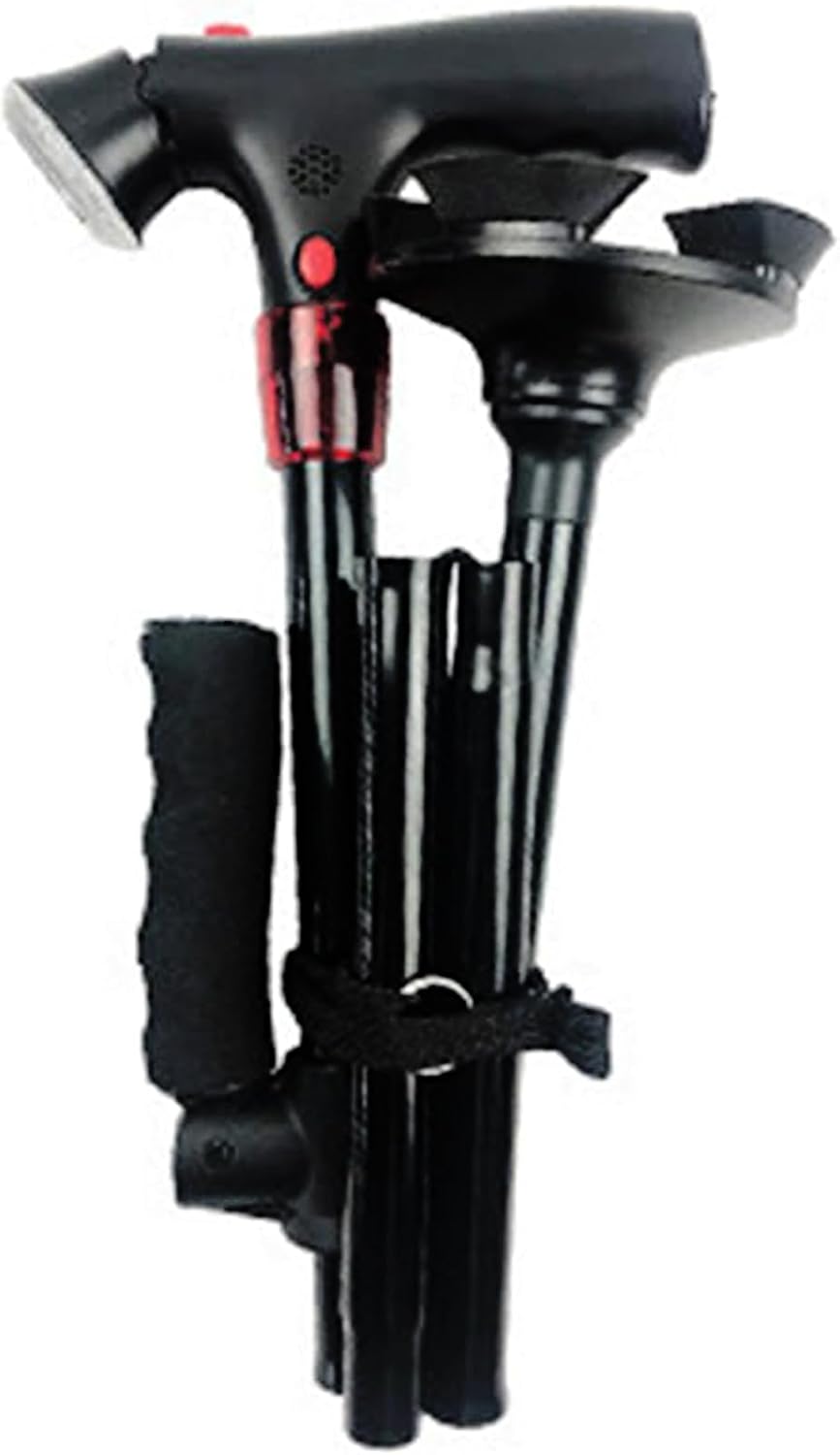 Light weight and folding walking stick with LED light provides reliability stability across indoor/outdoor terrains while ensuring portability for travel or storage