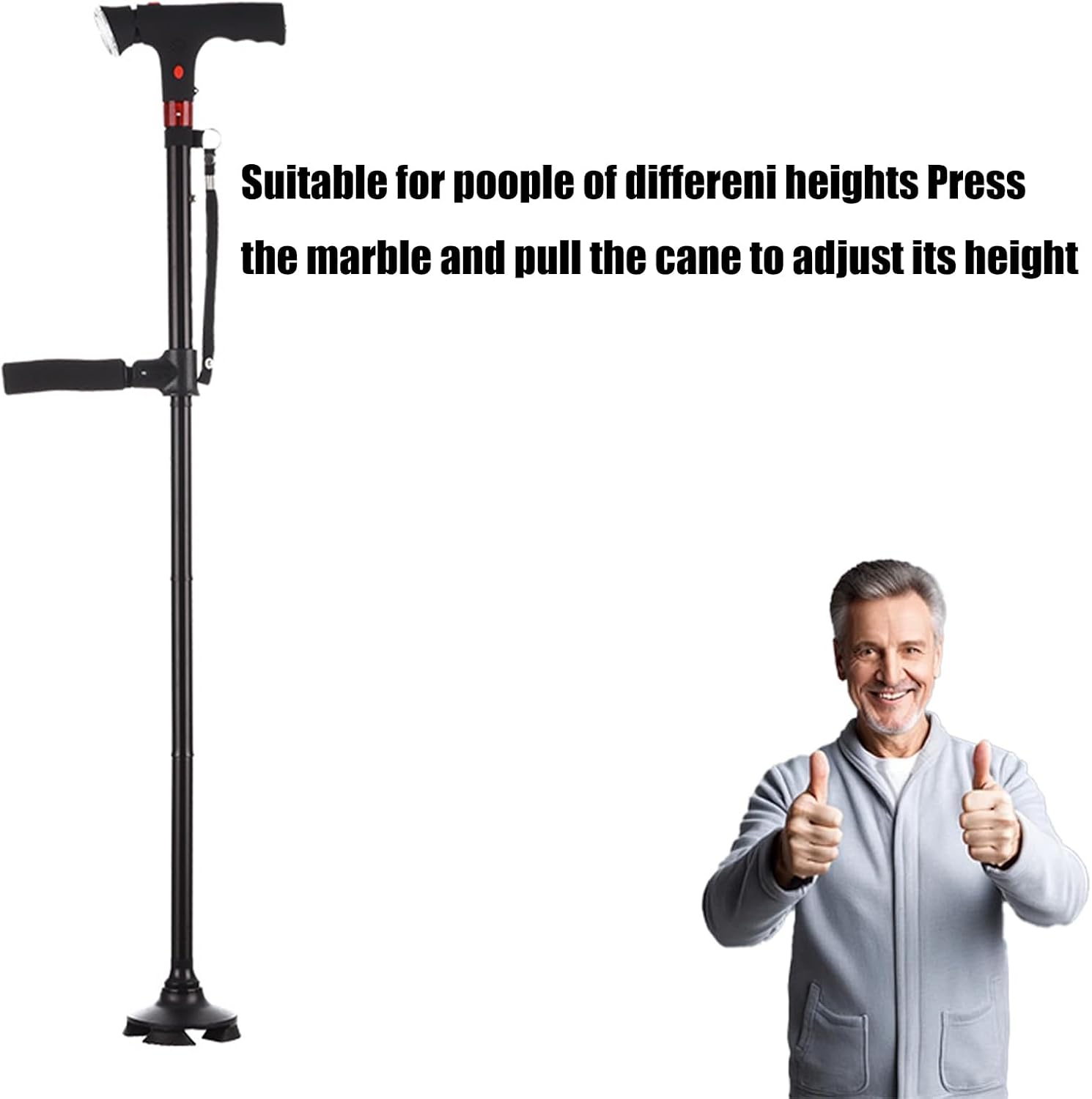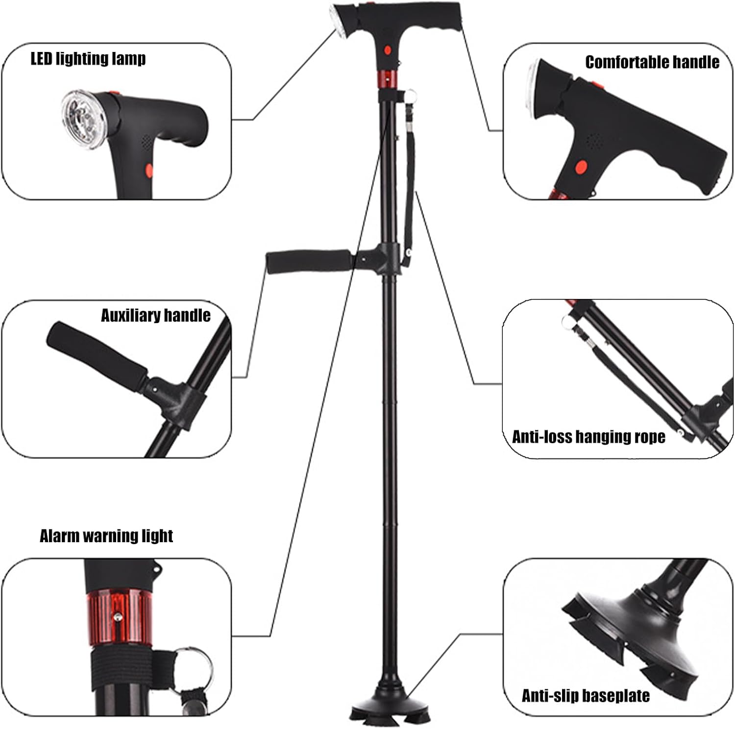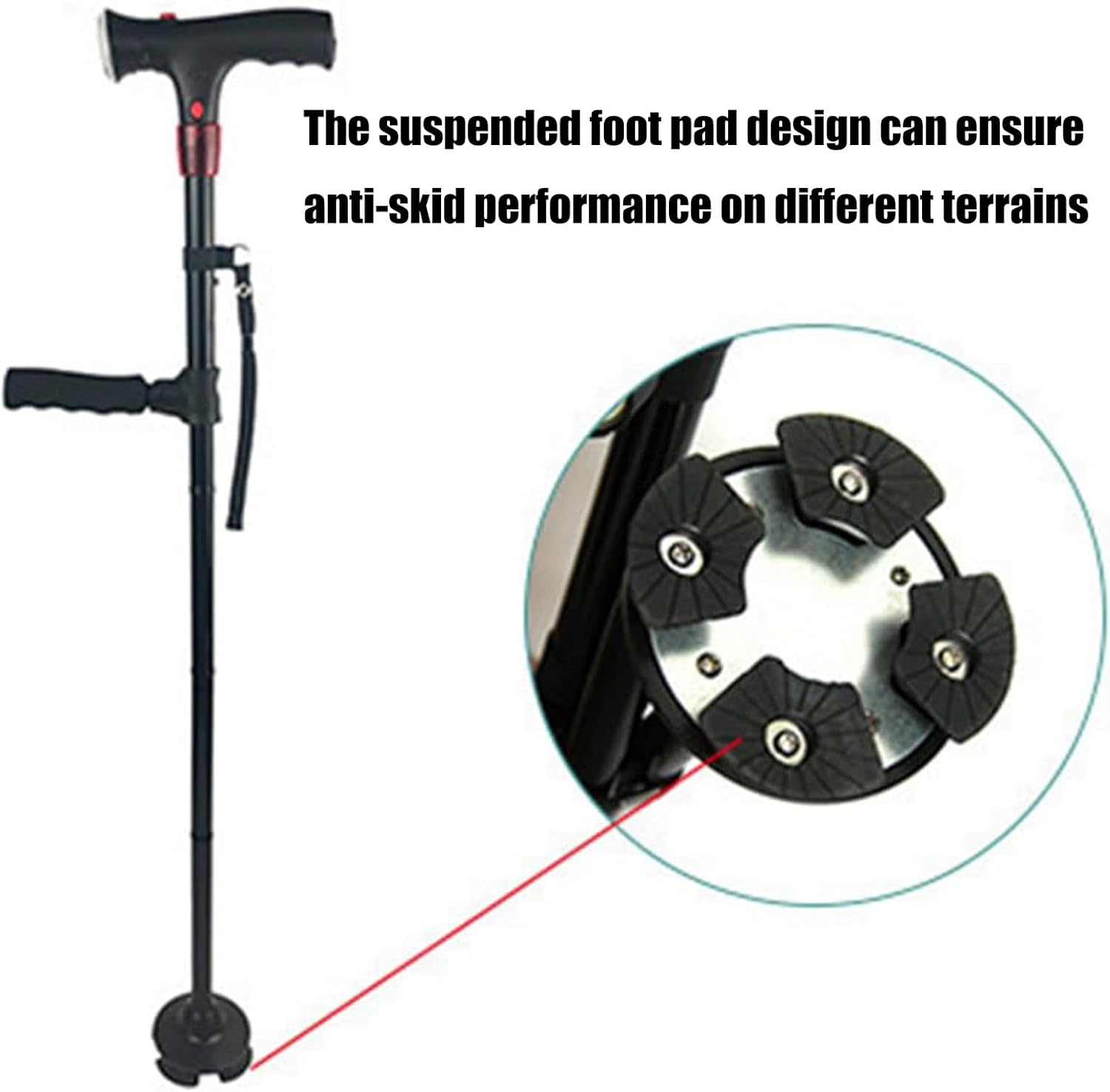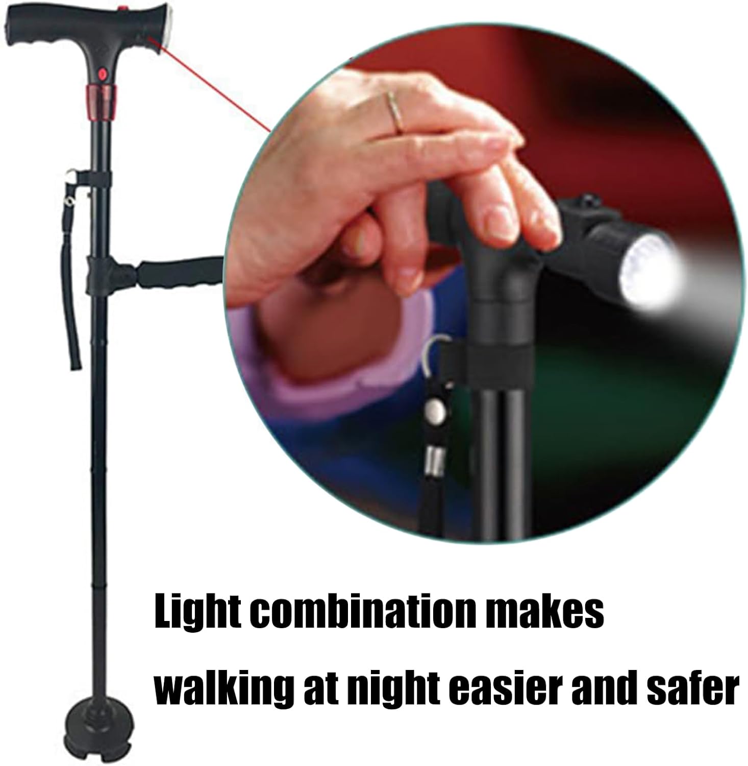 Navigates nighttimes strolls, crowded shopping centers, or uneven trail confidently with its 360 degrees visibility LED beam and slip base for various weather traction