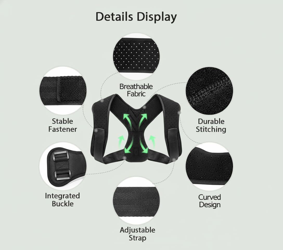 Our back brace is made for long-term wear, providing effective posture correction and pain relief. The ergonomic structure supports your spine and shoulders to reduce strain during long hours of sitting. With its adjustable shoulder straps and premium stitching, this posture vest is easy to use and stays comfortable for work, study, or travel. Ideal for both men and women, it helps prevent fatigue and keeps your back aligned. COMFORTABLE SUPPORT FOR EVERYDAY LIFE.