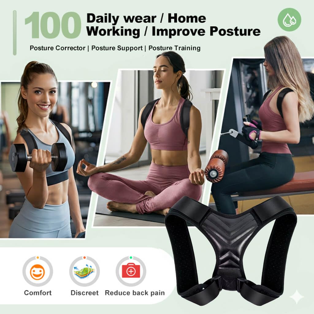Relieve Back Pain with this Posture Corrector for Women. An Adjustable Back Brace for Comfortable Daily Support, Ideal for Office Workers.