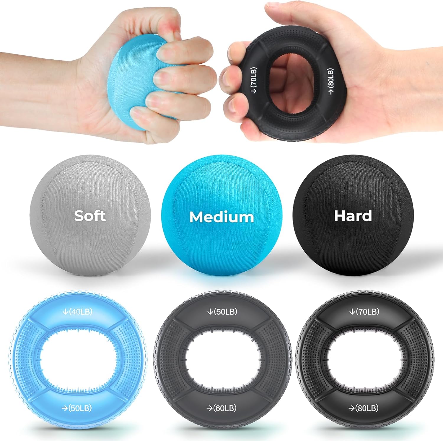 【All-in-One Grip Strengtheners】: The 6pcs hand grip strengthener set combines 3 stress balls with 3 resistance grip rings, offering varying resistance levels. Whether you’re starting out, recovering from injury, or pursuing high-intensity workouts, you’ll find the perfect resistance strength.