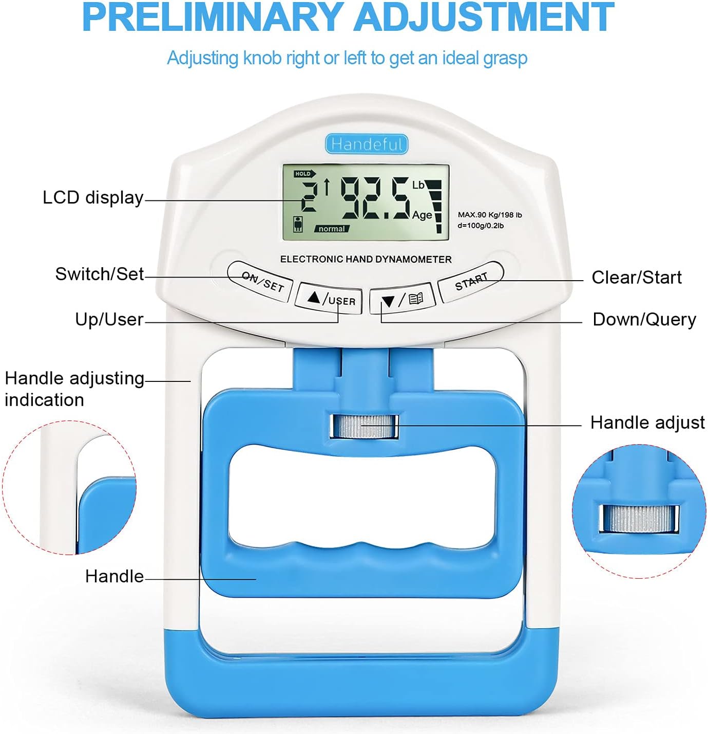 [Accurate Measurement] – This hand Grip Strength Tester is equipped with a high-precision strain gauge sensor for accurately measuring Grip Strength up to 198 pounds with the division of 0.2lbs / 0.1kgs. 2* AAA batteries included;