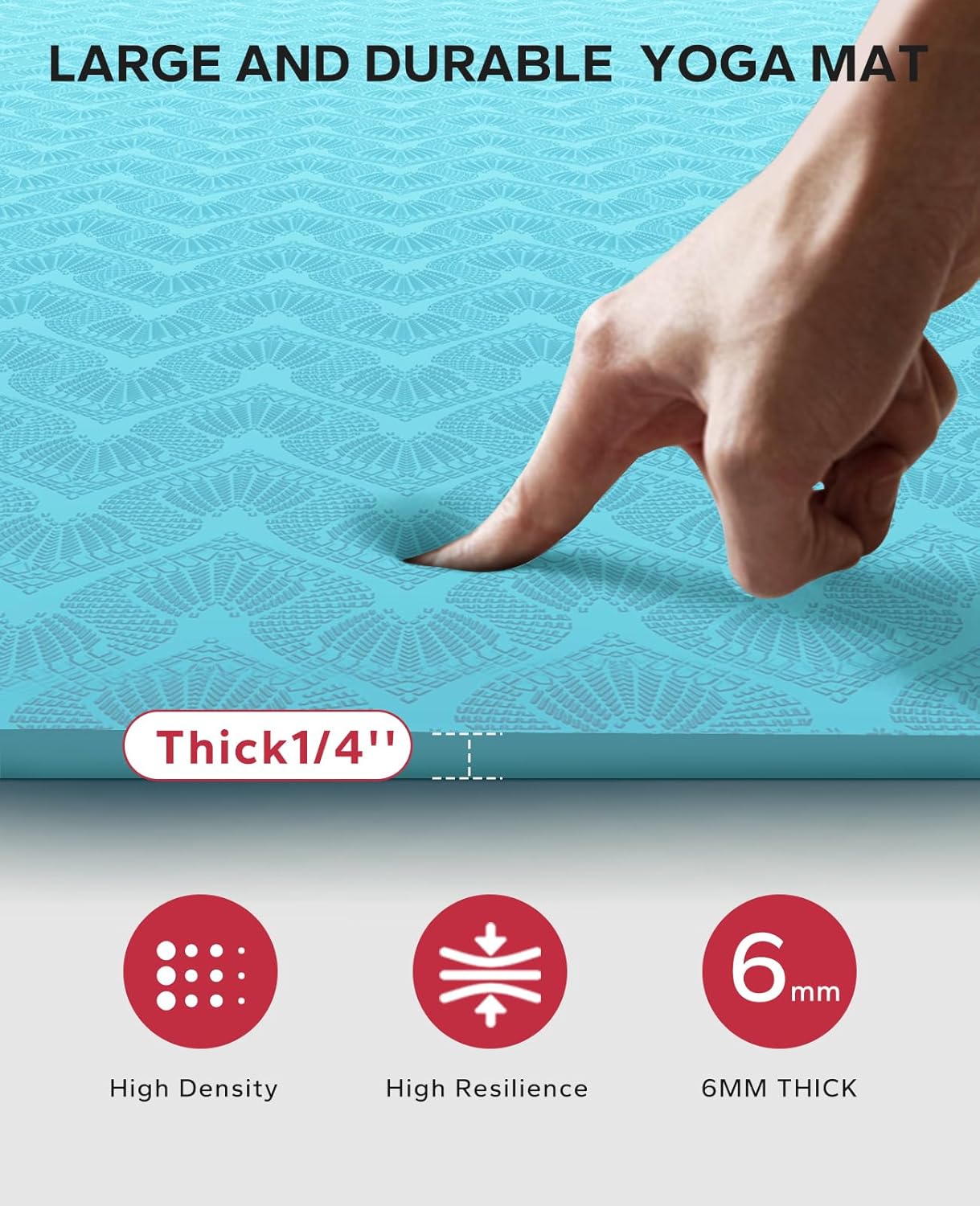 𝐄𝐱𝐜𝐞𝐥𝐥𝐞𝐧𝐭 𝐂𝐮𝐬𝐡𝐢𝐨𝐧𝐢𝐧𝐠&𝐑𝐞𝐬𝐢𝐥𝐢𝐞𝐧𝐜𝐞: The exercise mat is 6mm thick, providing excellent comfort and support in various yoga poses. Whether you’re a beginner or an experienced yoga enthusiast, this yoga mat can meet your needs. Its outstanding cushioning and resilience will help protect your joints and reduce the stress on your body. We believe this yoga mat will be the perfect companion for your practice