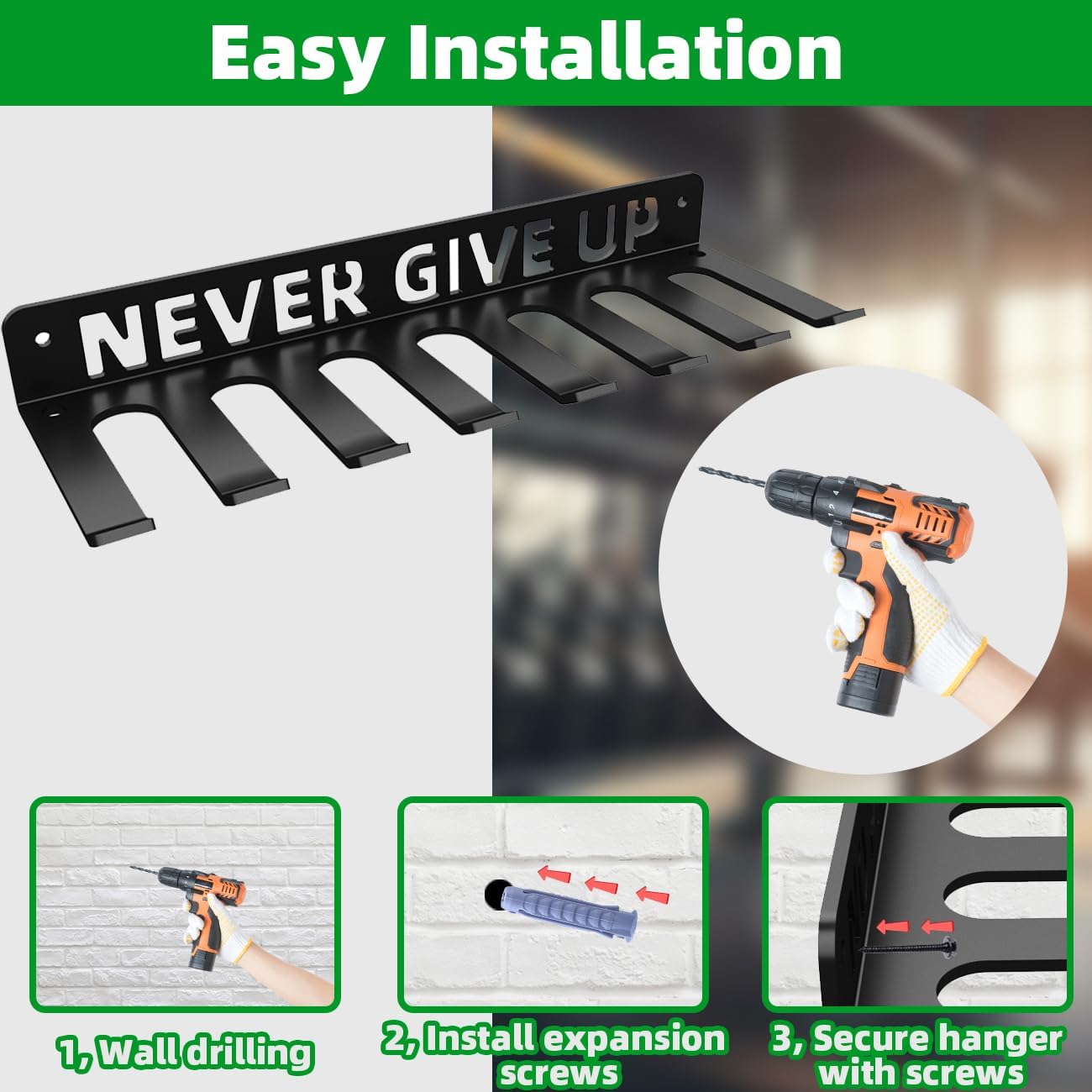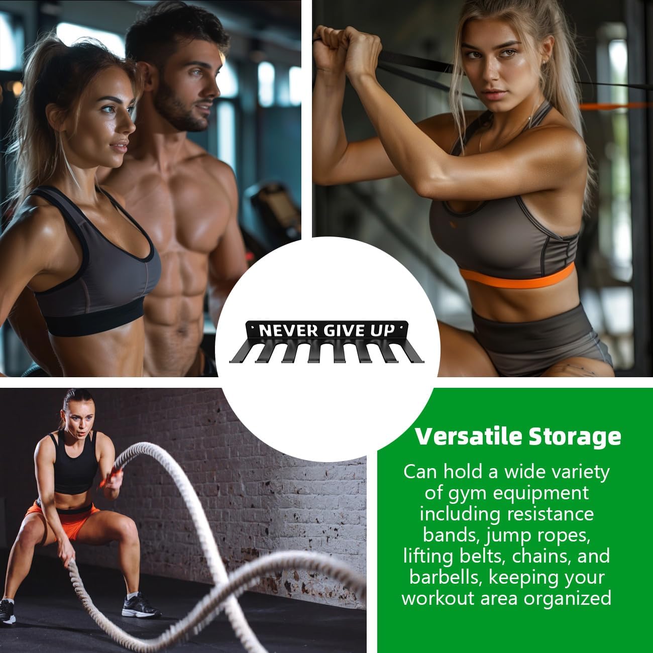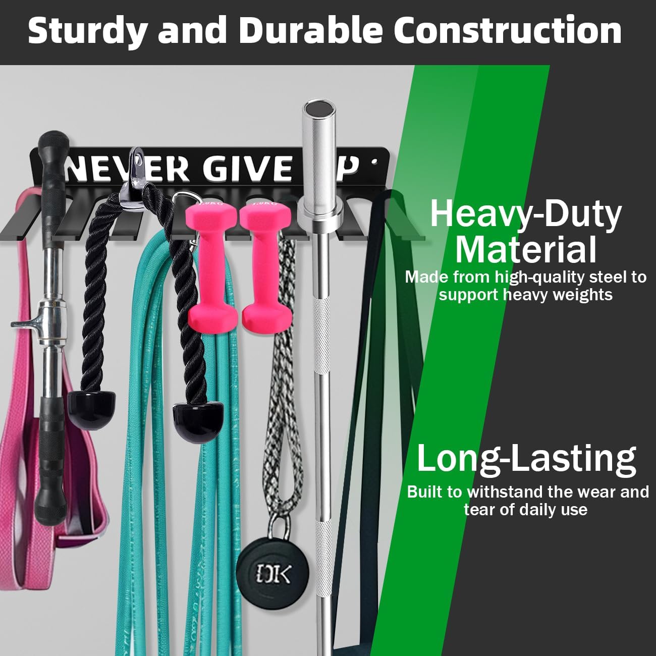 Multi-Purpose Design: Our heavy-duty storage rack is designed to hold a variety of fitness equipment such as resistance bands, straps, jump ropes, foam rollers, chains, barbells, weight belts, and various tools. It helps to keep your workout essentials organized and easily accessible in one place. The enhanced barbell holder comes with 2 carabiners to expand storage for hangable gym equipment.