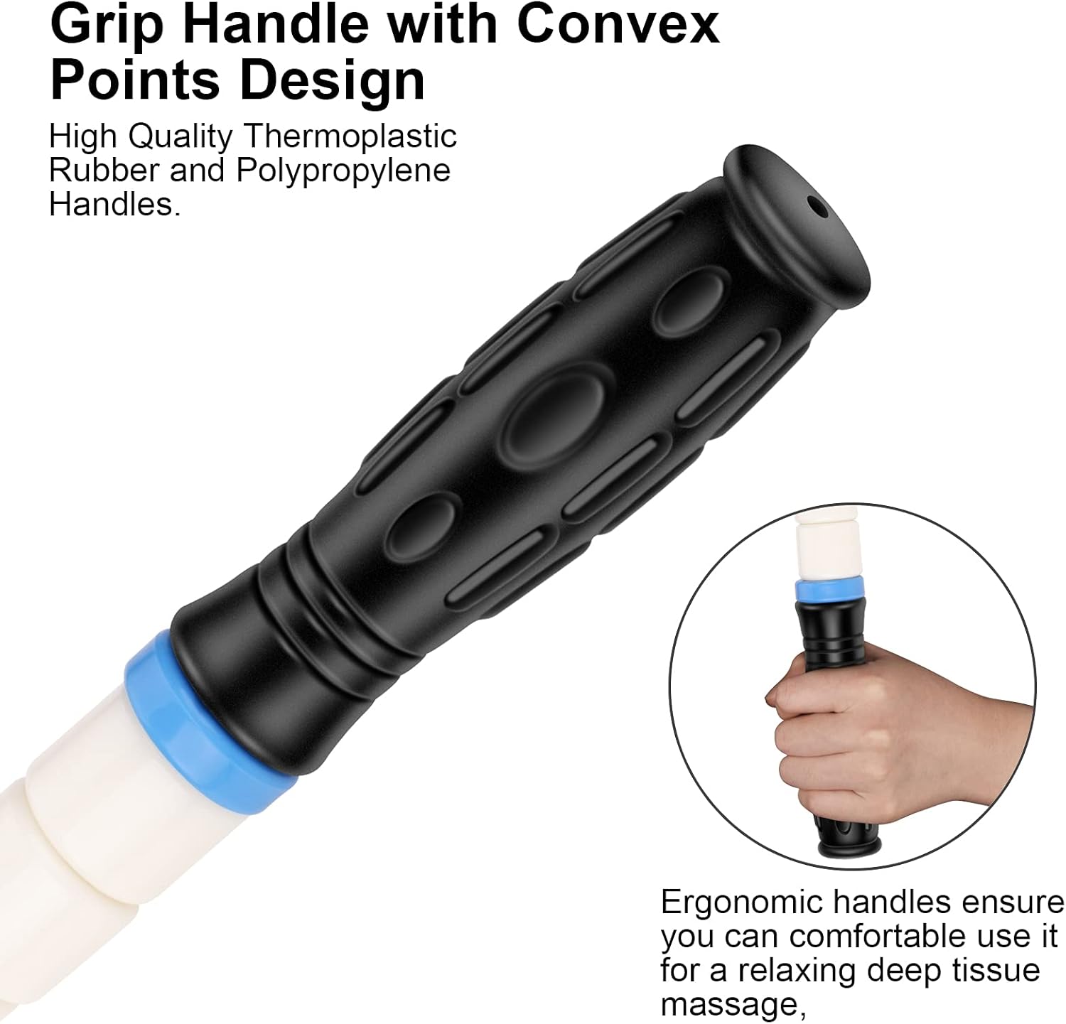 Double Handle with Bump Design: The design of this muscle roller ensures a stable handle, which can easily work with you for the most effective muscle massage and relief; the handle design with bumps can help you hit those hard to reach And perform a simple self-massage.