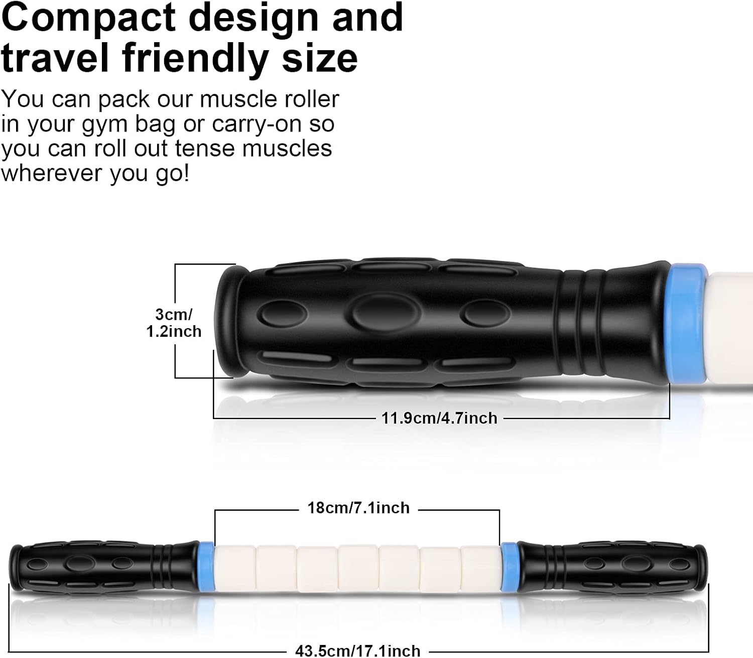Only 17×1.2 inches in size and 10.6 ounces, this travel massage stick is very suitable for home, gym and outdoor sports.