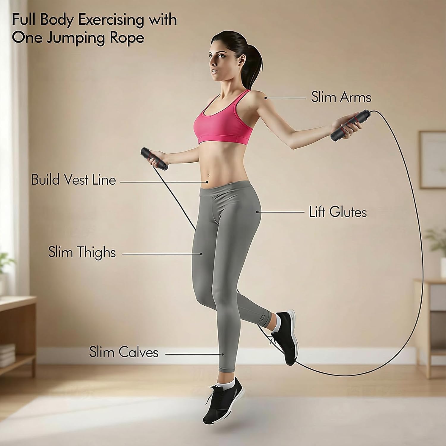 Skipping rope is an aerobic exercise that can enhance agility, increase flexibility, improve balance, burn major calories, increase speed, develop high muscle endurance, and improve coordination.
