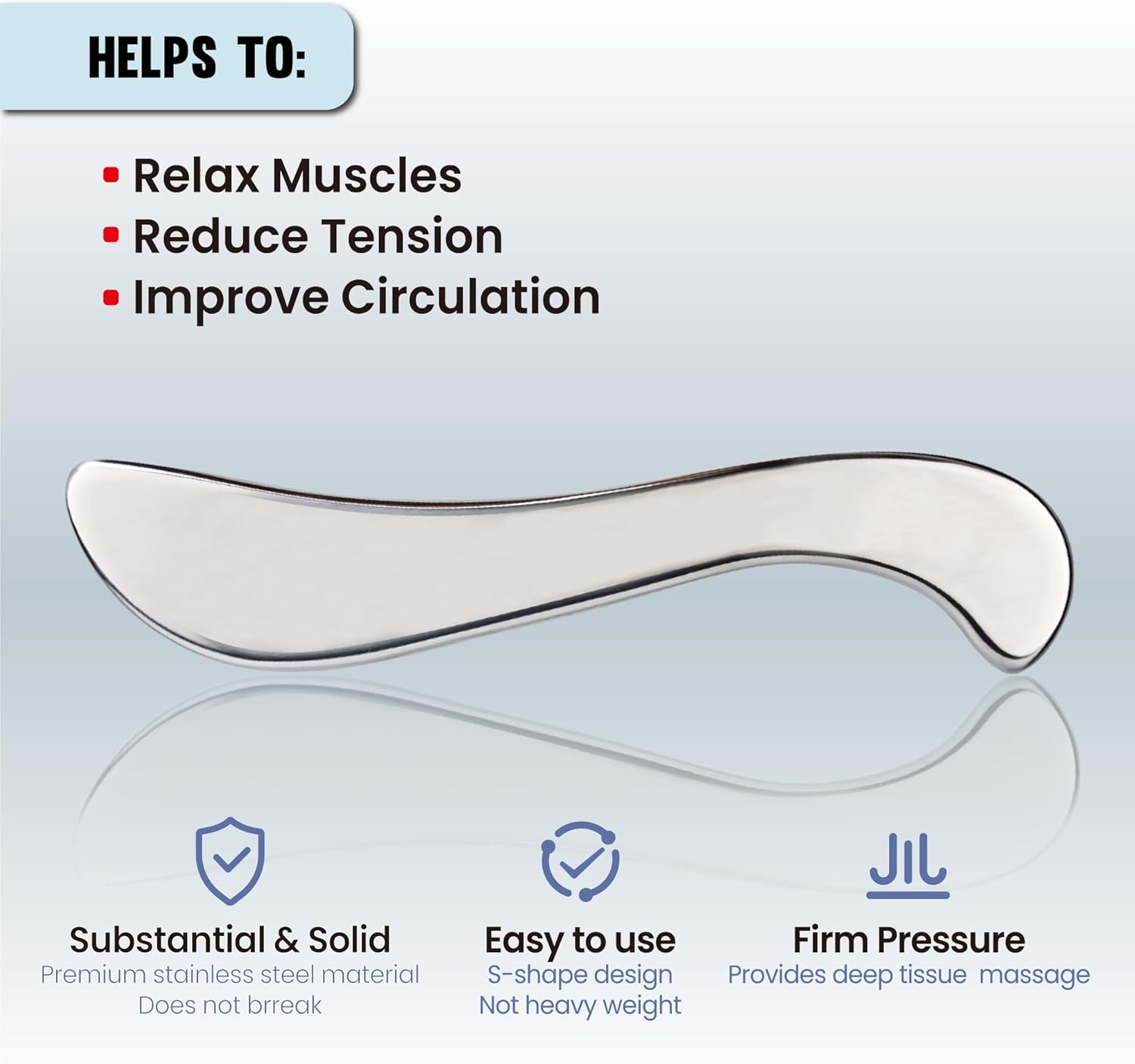 Whole Body Care: Fascia scraper adopts an S-shaped design, which is ergonomic and easy to hold, suitable for various muscle, such as the arms, back, neck, thighs, calves and chest