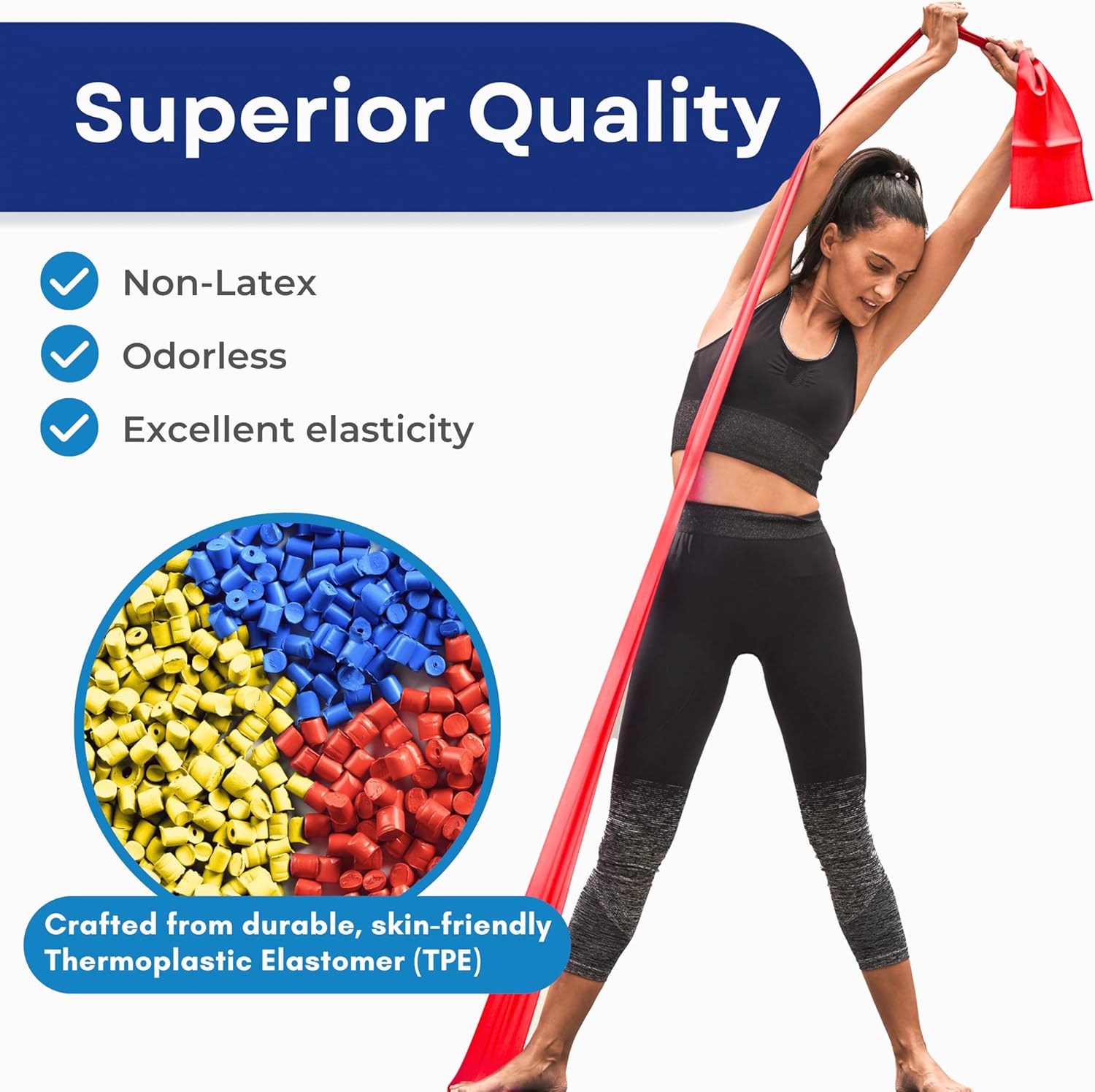 High-Quality Non-Latex Material: Crafted from durable, skin-friendly Thermoplastic Elastomer (TPE), these bands are perfect for those with latex sensitivities. Their smooth, odorless surface ensures long-lasting elasticity without tearing.