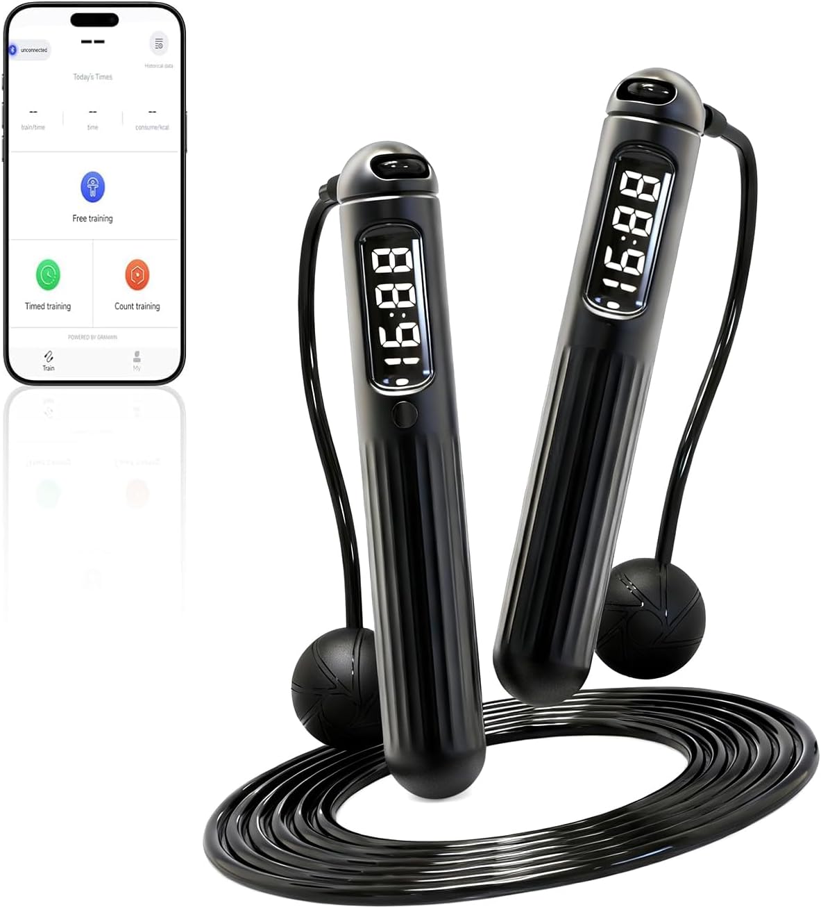 Jump rope with counter Clear and bright LED display provides real-time feedback on key statistical data: exercise duration, number of jumps, and calories burned. You can freely set training goals and switch between multiple intelligent modes (such as free, timed, and counted) to truly personalize your workout plan.