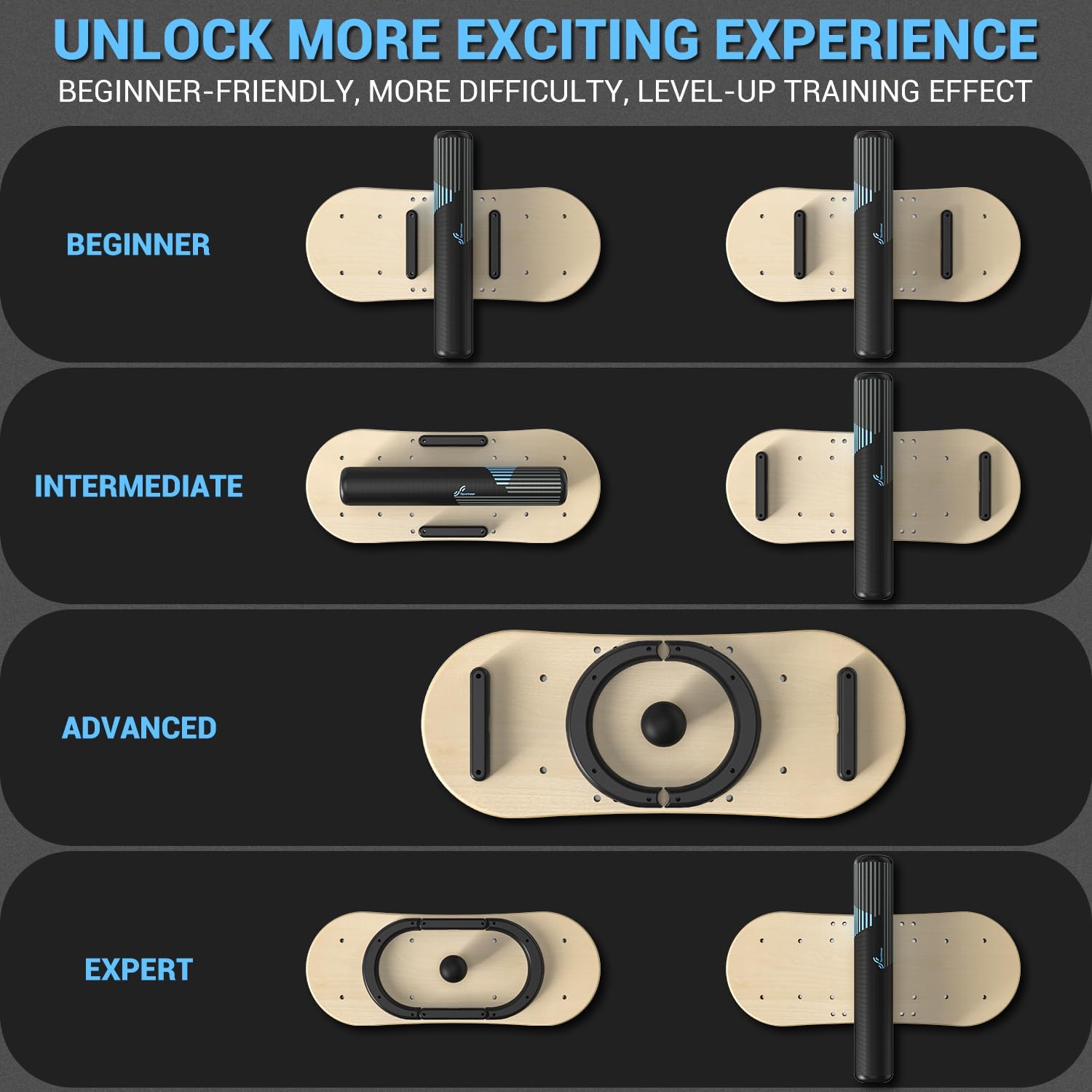 【7 Modes & Adjustable Stoppers】Explore 7 unique challenge modes with the included roller and 2.8” ball. Four magnetic removable stoppers allow for quick, tool-free adjustments, making it the ultimate balance boards for adults seeking progressive workouts from beginner to expert.