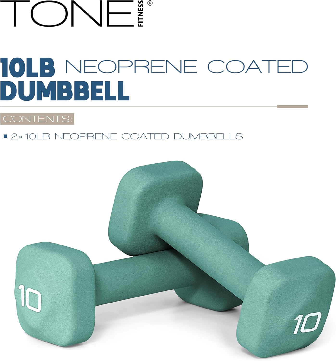 Tone Fitness Neoprene Dumbbell Weight Pairs with Anti-Roll Square Head | Multiple Options