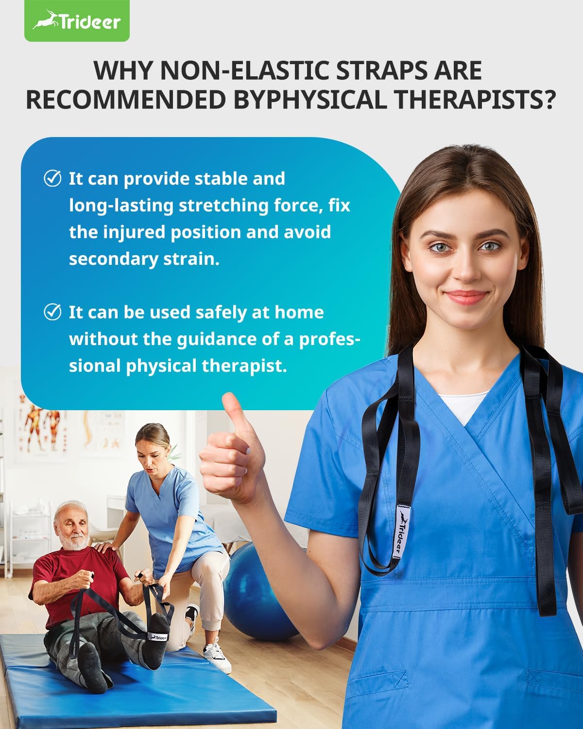 Multi-benefit Stretch Strap: Boosts flexibility, knee ROM, muscle restoration, harm prevention. Beneficial by PTs. Eases joint ache, addresses shoulder & leg points. Good yoga gear