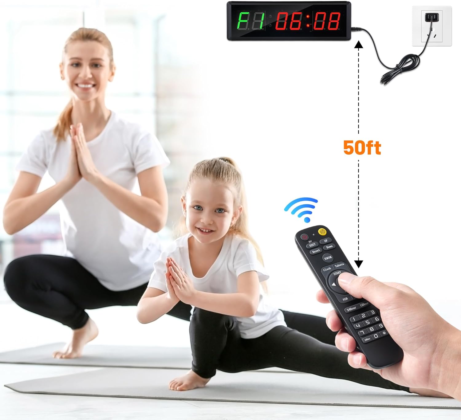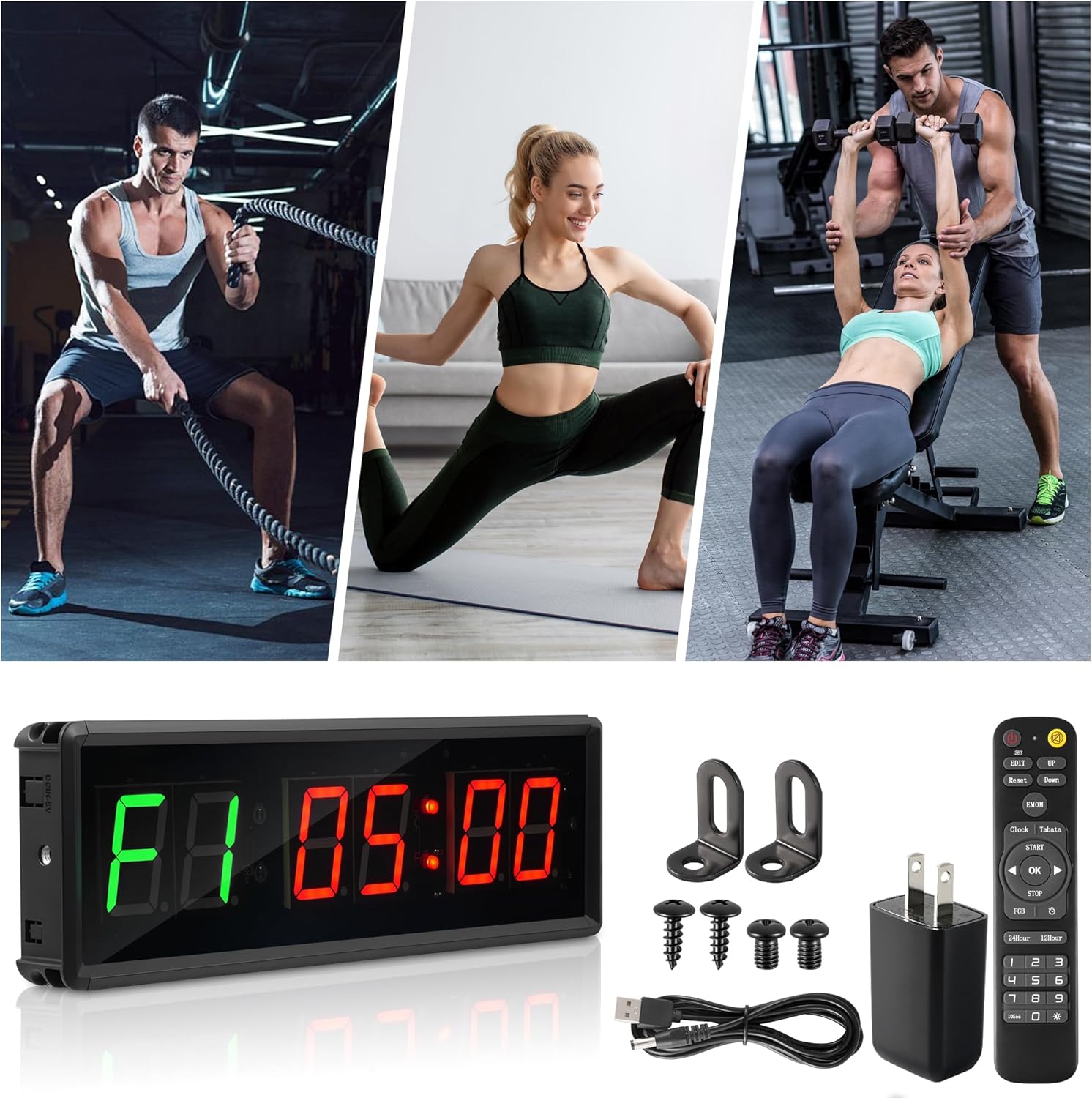 Workout Garage Gym Timer – Easy to Use: With the remote control,you can easy to edit your own workout intervals Tabata, Countdown/up timing, FGB1/FBG2, EMOM(loop countdown), Stopwatch, 10s preparation time and 9 custom interval modes.Daily workout plans, including Boxing, Tabata, HIIT, EMOM, fitness training, yoga practice, exercises, and other activities.
