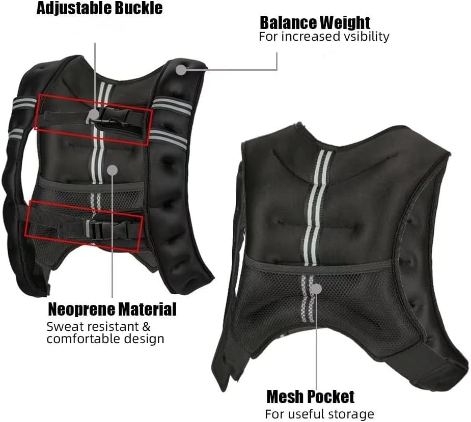 Weighted Vest, 12Lb/16Lb/20Lb/25Lb/30Lb Weight Vest with Reflective Stripe and Mesh Pocket for Home Gym,Workout, Strength Training
