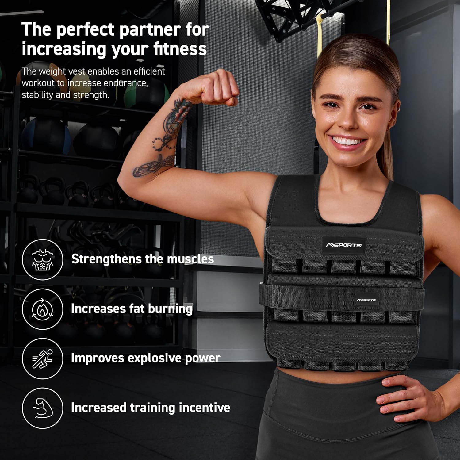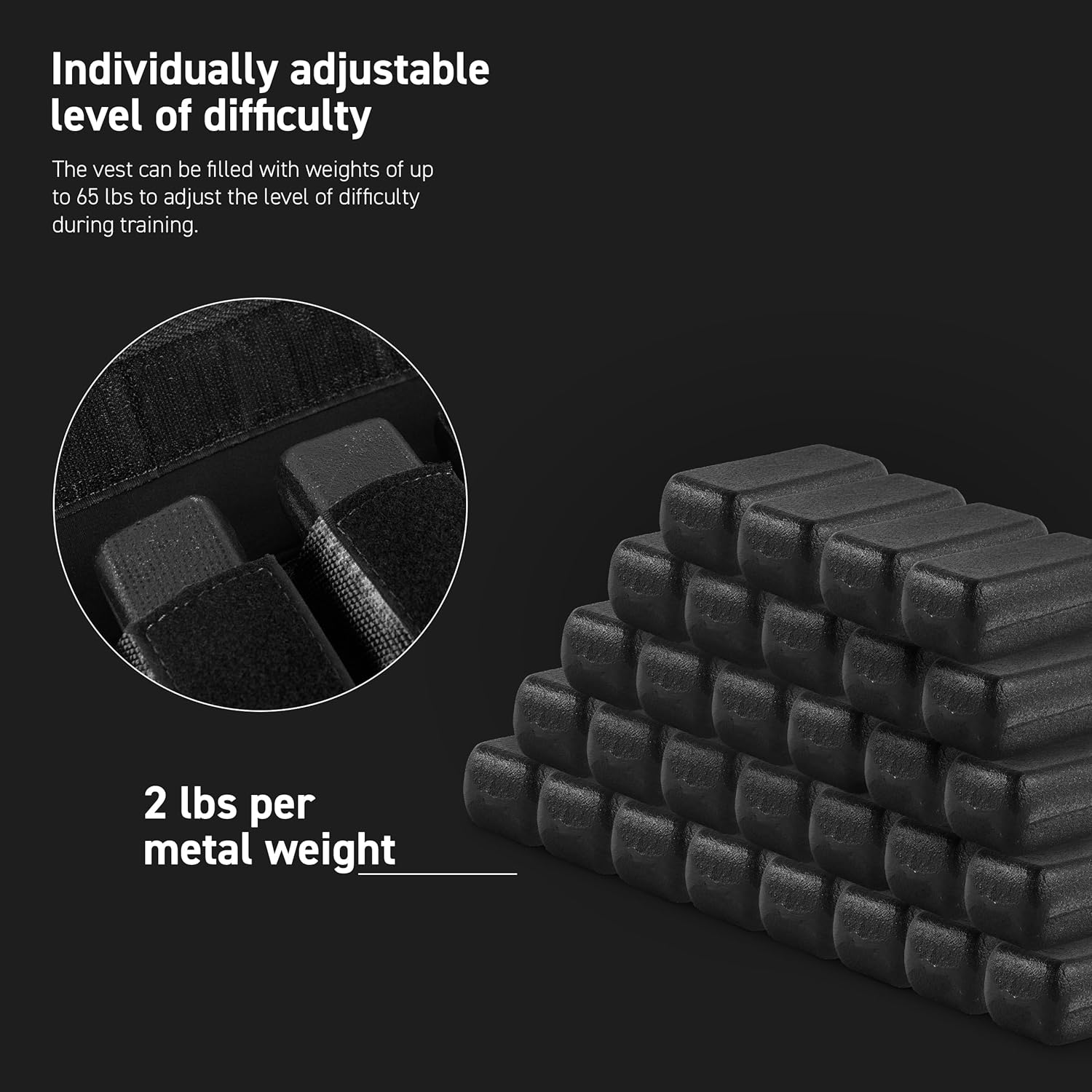 – Includes a free digital e-book with full-body workouts—whether you start with a 20 lb weighted vest, push to a 30 lb weighted vest, or take on the full 65 lb challenge.