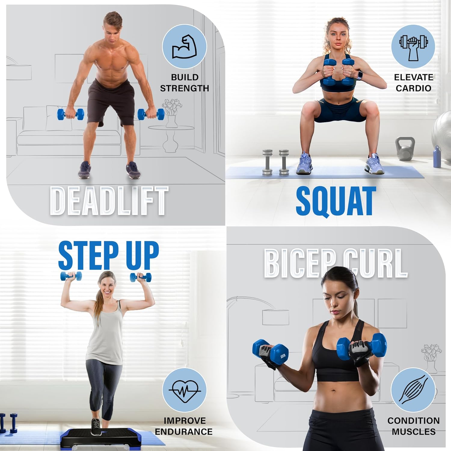 VINYL-COATED: This vinyl-coated weights dumbbell set protects both your hands and floor during workouts & easy to clean with just a swipe; The vinyl also enhances grip stability, helping you maintain control of your form—ideal for intense workouts