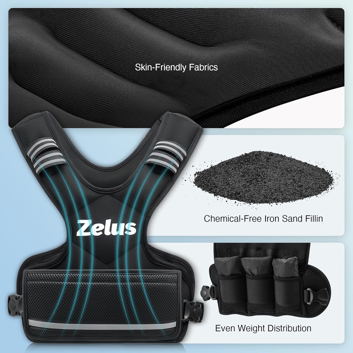 ZELUS Weighted Vest for Men and Women | 4-10lb/11-20lb/20-32lb Vest with 6 Ironsand Weights for Home Workouts | Adjustable Body Weight Vest Exercise Set for Cardio and Strength Training